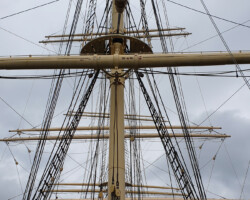 Nach dem Museum besichtigen wir die Pommern. Die Pommern ist der einzige P-Liner, der unter Deck im Original erhalten ist und wo man die Dimension der Frachträume wahrnehmen kann. Wir haben eine gewisse Verbindung zu den P-Linern, da wir mit Anori im Winter immer in Travemünde waren und dort liegt das Schwesterschiff, die Passat. Als wir wieder draußen stehen, fällt das Wasser noch immer in Strömen.