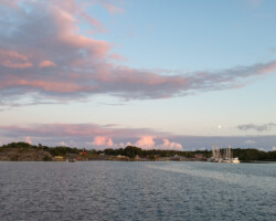 Wir entscheiden uns ohne große Diskussion für Plan B und laufen weiter nach Sandviken bei Eckerö. Um 05:00 Uhr fällt der Anker. Der Moment, wenn das Schiff ruhig liegt und der Motor verstummt, ist nach zwei Nächten unterwegs besonders angenehm. Wir schlafen lange. Am Nachmittag setzen wir mit dem Dinghi über nach Eckerö und machen einen kleinen Spaziergang über die ruhige Insel, Åland empfängt uns auf angenehme Art und Weise.