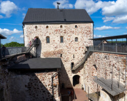 Als es tags darauf wieder trocken ist, steigen wir aufs Rad. Vom Traditionsseglerhafen über die St. Olaf’s Kirche bis zurück nach Kastelholm, diesmal zur Schlossbesichtigung mit Führung durch das mittelalterliche Leben. Knapp 70 Kilometer kommen zusammen. Die Landschaft ist nicht spektakulär, aber abwechslungsreich. Felder, kleine Straßen, immer wieder Wasser. Am Ende sind wir zufrieden – und spüren die Strecke.