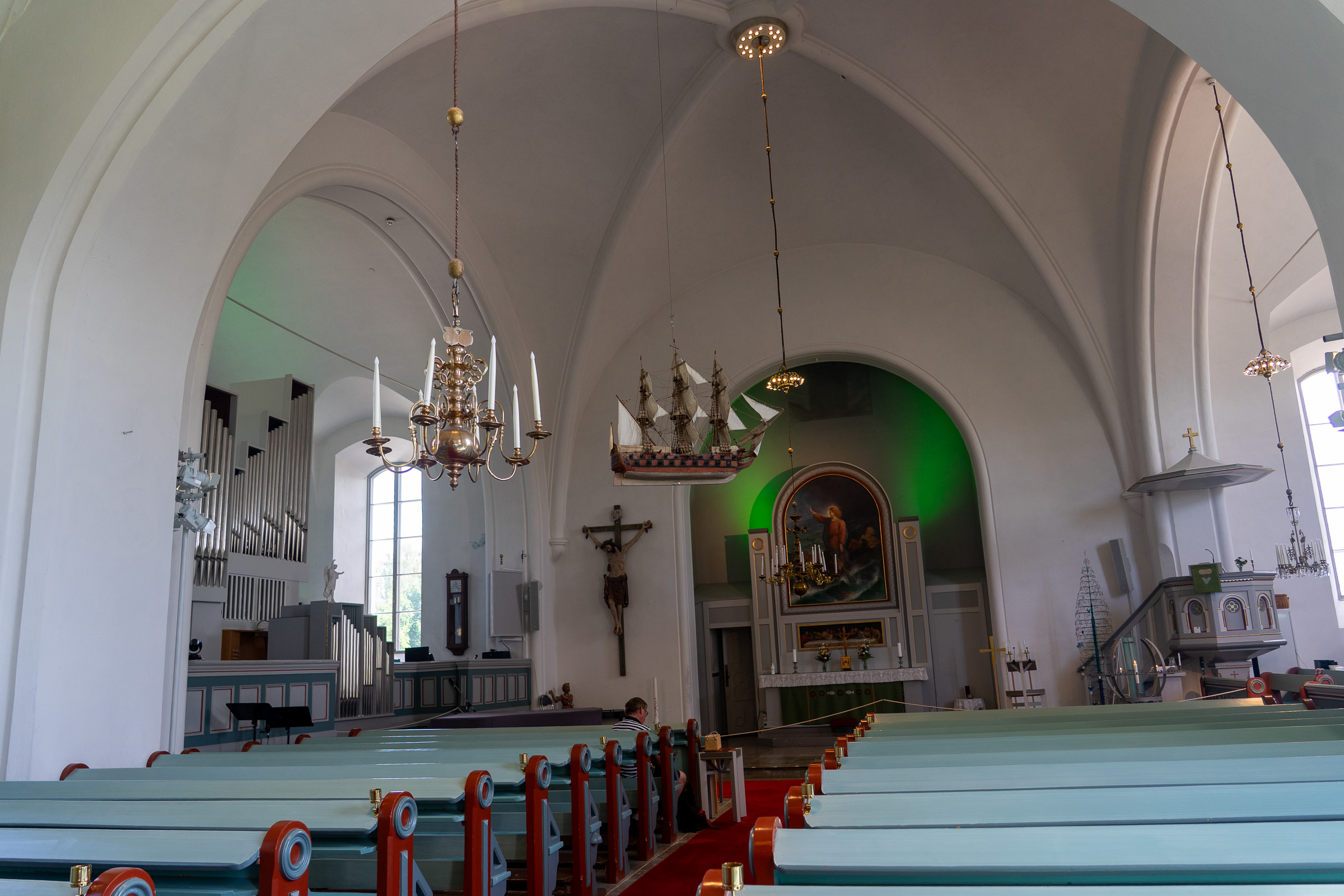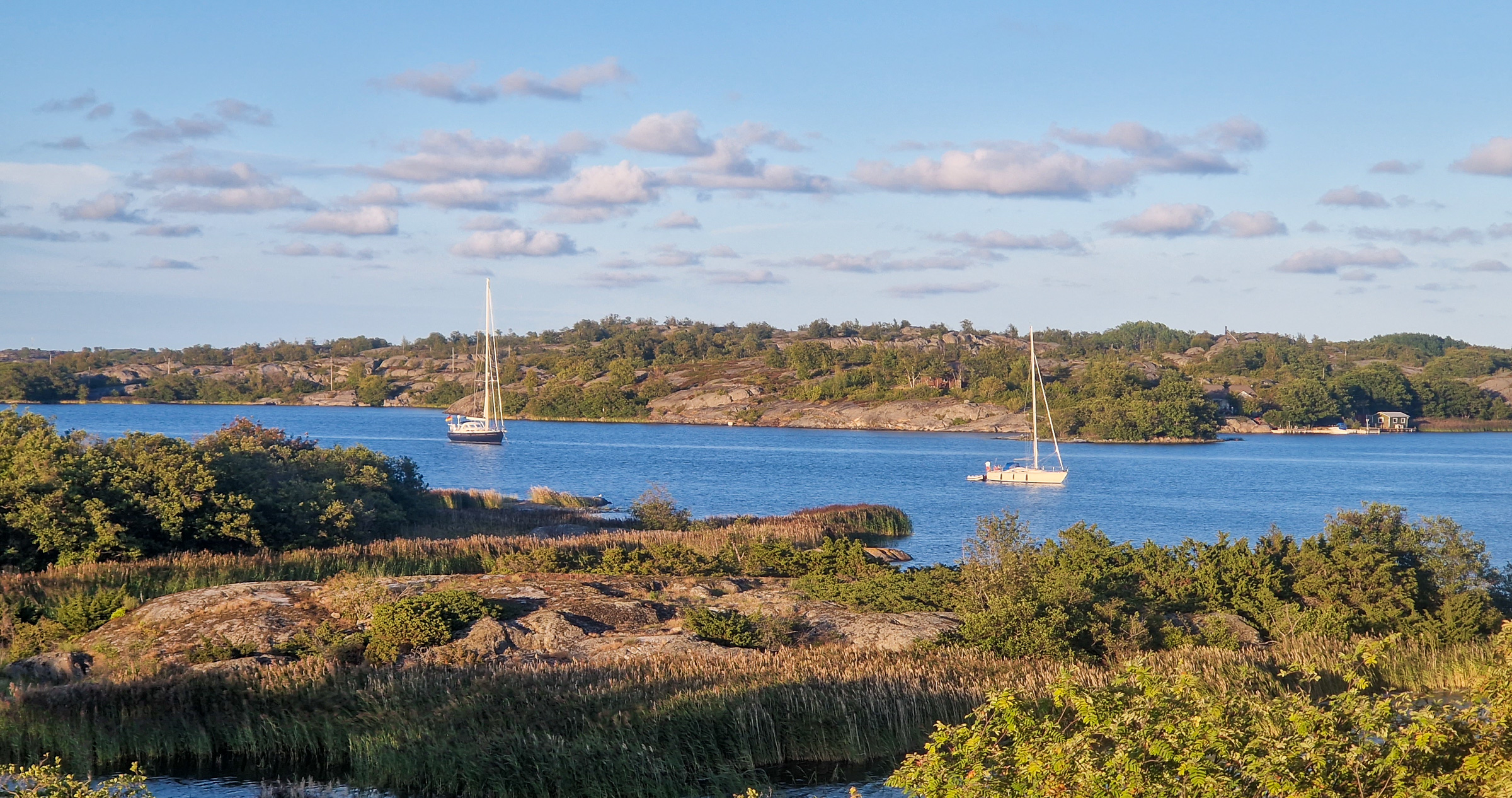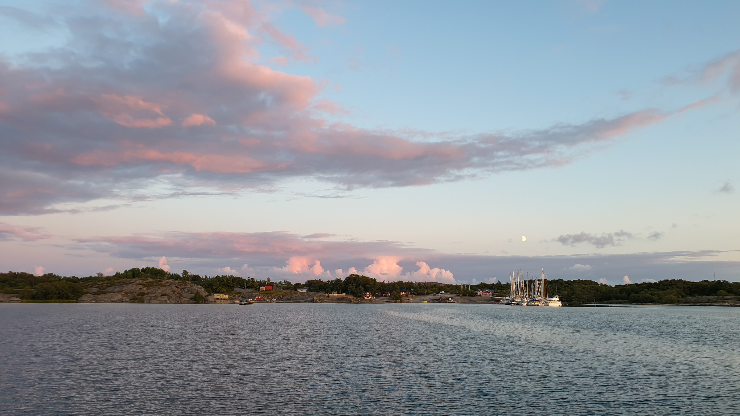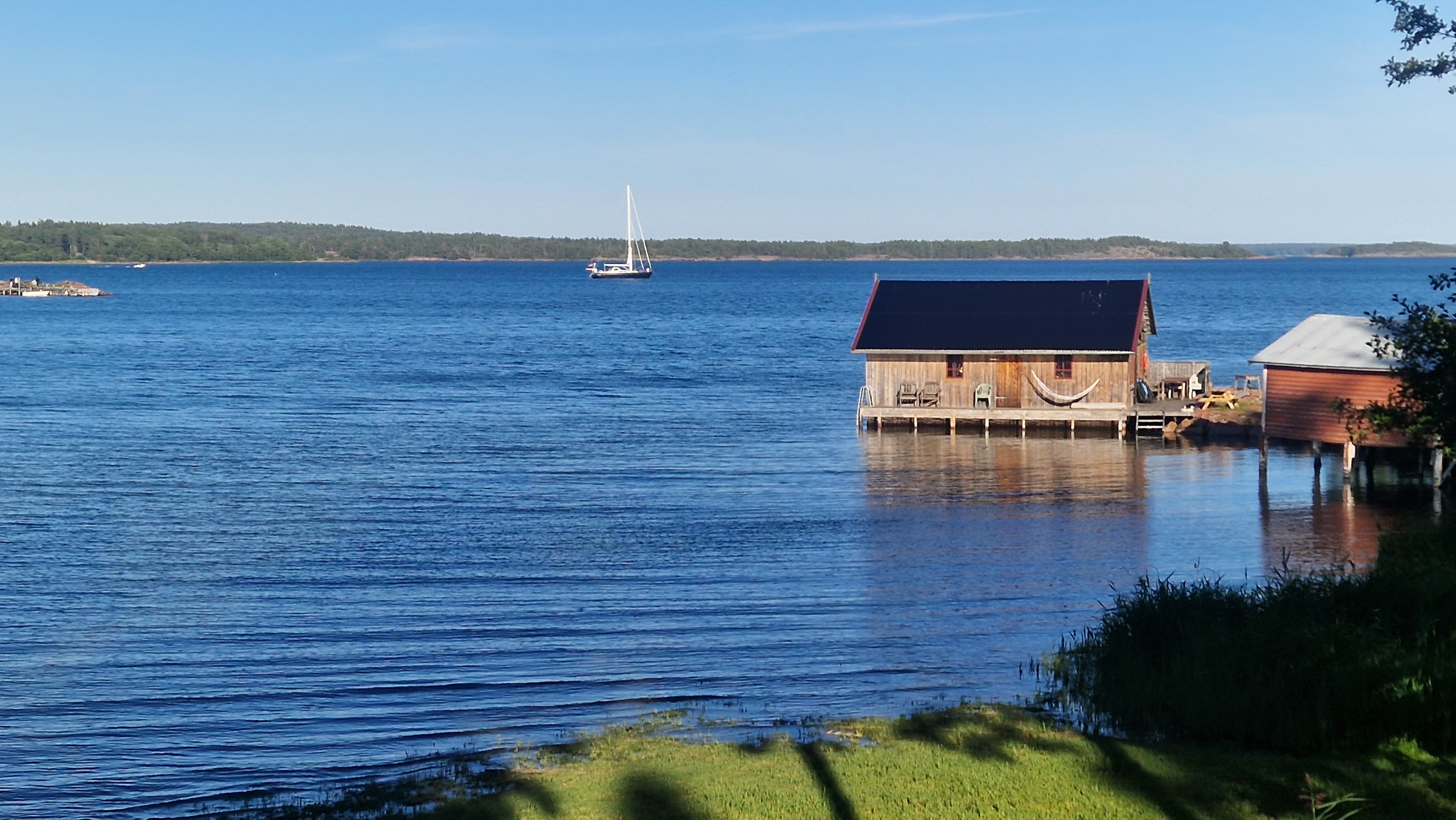 Wir entscheiden uns ohne große Diskussion für Plan B und laufen weiter nach Sandviken bei Eckerö. Um 05:00 Uhr fällt der Anker. Der Moment, wenn das Schiff ruhig liegt und der Motor verstummt, ist nach zwei Nächten unterwegs besonders angenehm. Wir schlafen lange. Am Nachmittag setzen wir mit dem Dinghi über nach Eckerö und machen einen kleinen Spaziergang über die ruhige Insel, Åland empfängt uns auf angenehme Art und Weise.