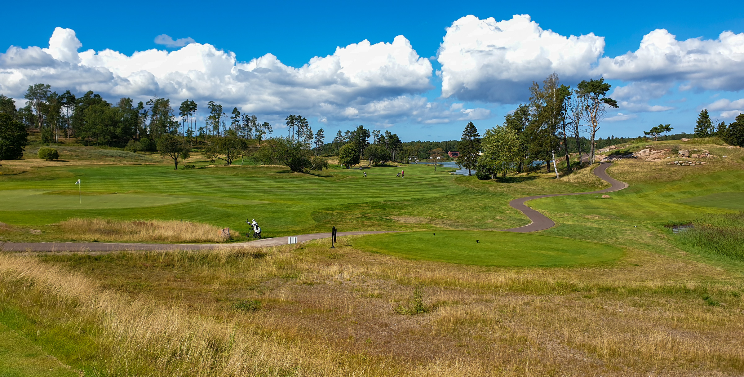 Ein Taxi bringt uns am nächsten Tag nach Kastelholm zum Ålands Golfklubb. Wir spielen die Slottsbanan und genießen die ruhige, grüne Weite mit Blicken auf das Schloß. Der Platz mit seinen zahlreichen Wasserhindernissen fordert Konzentration, bleibt aber fair. Und landschaftlich ist er ohnehin eine Reise wert.