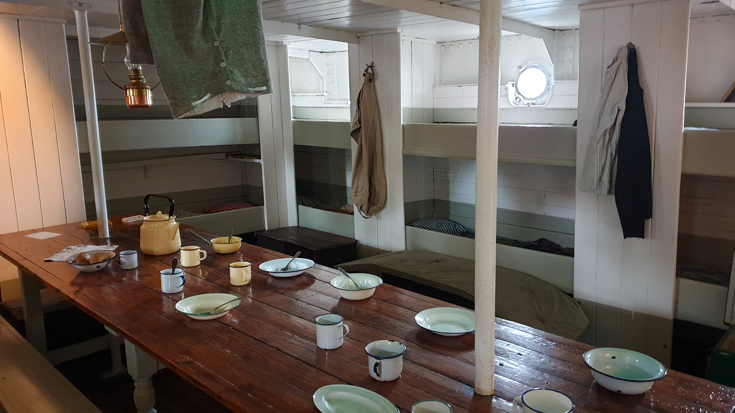 Nach dem Museum besichtigen wir die Pommern. Die Pommern ist der einzige P-Liner, der unter Deck im Original erhalten ist und wo man die Dimension der Frachträume wahrnehmen kann. Wir haben eine gewisse Verbindung zu den P-Linern, da wir mit Anori im Winter immer in Travemünde waren und dort liegt das Schwesterschiff, die Passat. Als wir wieder draußen stehen, fällt das Wasser noch immer in Strömen.