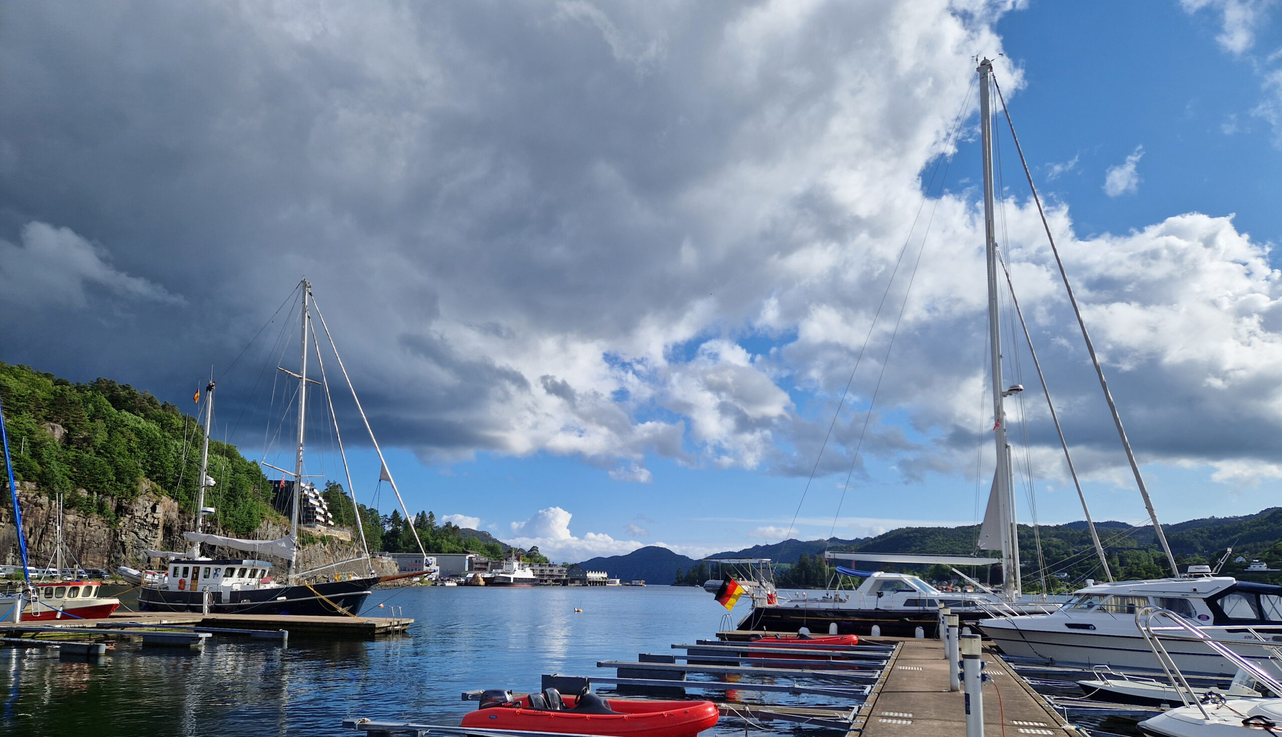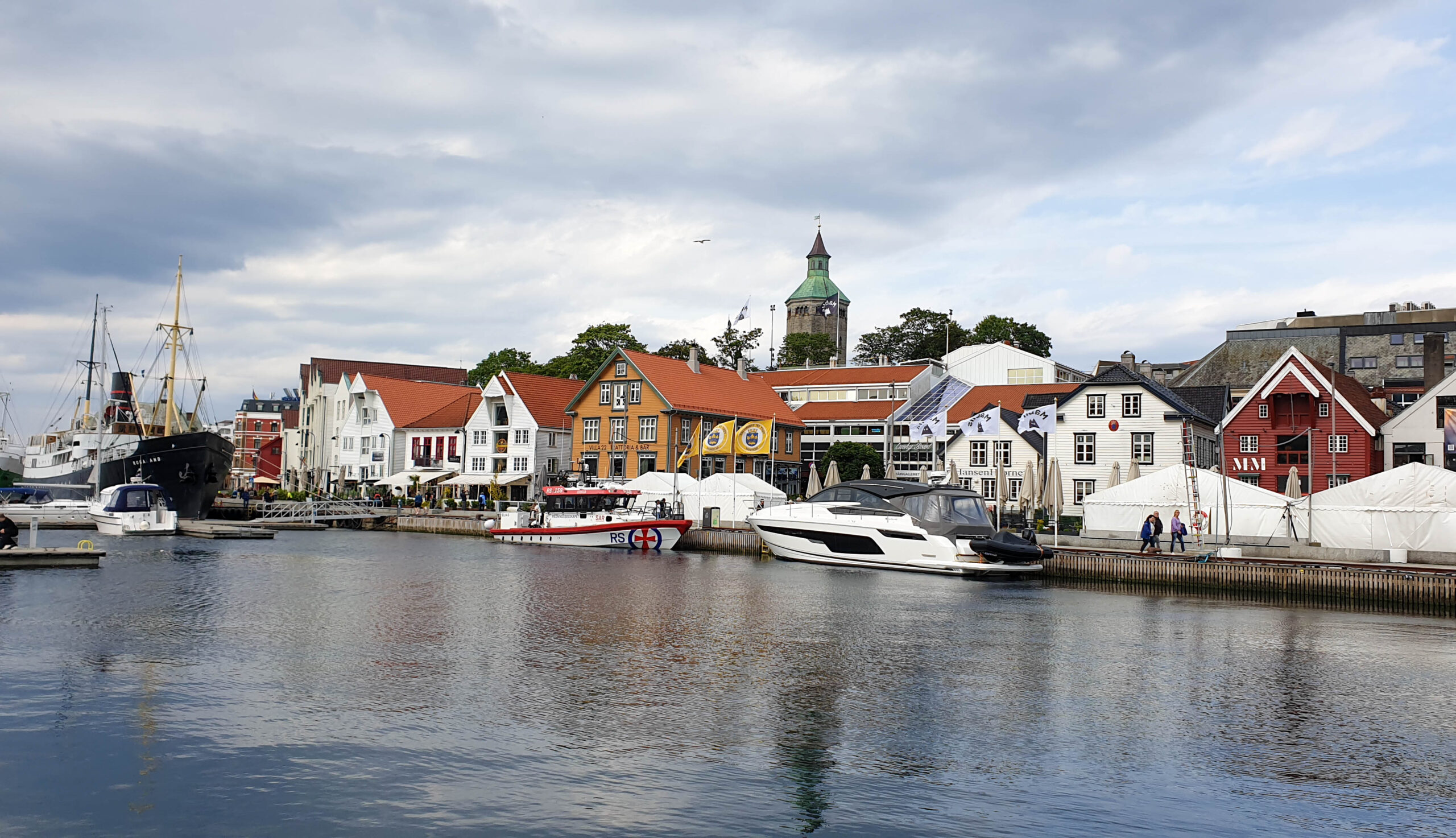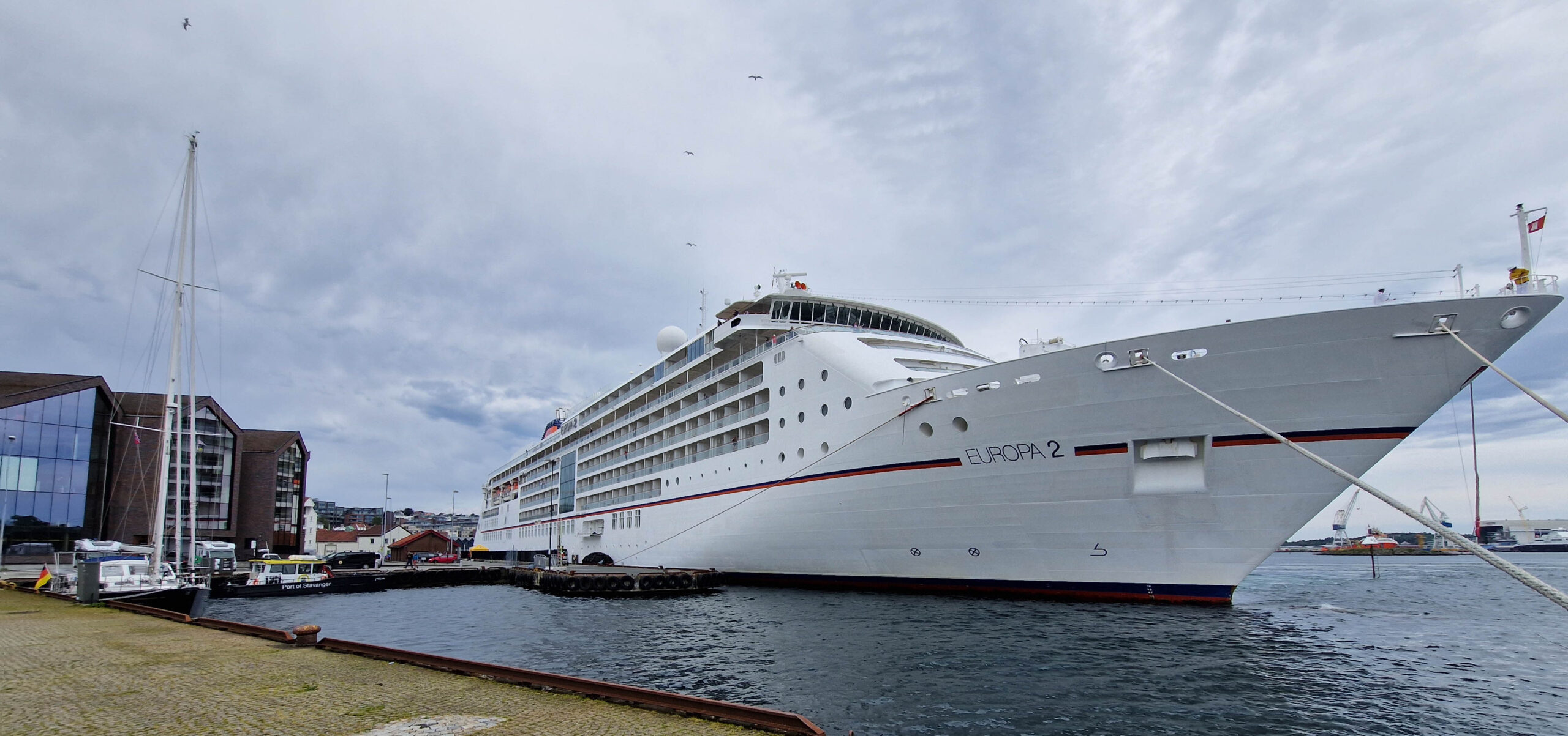 In Stavanger, unserer nächsten Station, erhielten wir einen Liegeplatz zwischen dem Sportboothafen und dem Anleger für Kreuzfahrtschiffe, sodass die MS Europa 2 und die Amadea unsere Stegnachbarn waren. Zwischen den Regenphasen blieb zum Glück Zeit für einen ausgedehnten Stadtbummel durch die Altstadt, Fargegata, zum Dom und entlang des Hafens. Dazu kam noch eine Radtour mit mit einem Stopp bei den “Schwertern im Fels”.