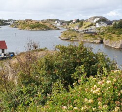 Zur Abfahrt Richtung Nikøy, das zu Butlandet gehört, kam dann der Regen zurück. Da wir im Päckchen mit zwei weiteren Booten lagen und das äußere noch bleiben wollte, war das Ablegen eine kleine Koordinationsübung. Erst unter Maschine durch die nasse Suppe, später mit Wind von achtern und endlich ohne Regen – ein versöhnlicher Abschluss des Tages als wir in Nikoybrugge anlegen. Ein kurzer Spaziergang vor Ort (mit einigen Schauern) erschließt uns eine wunderschöne Insellandschaft.
