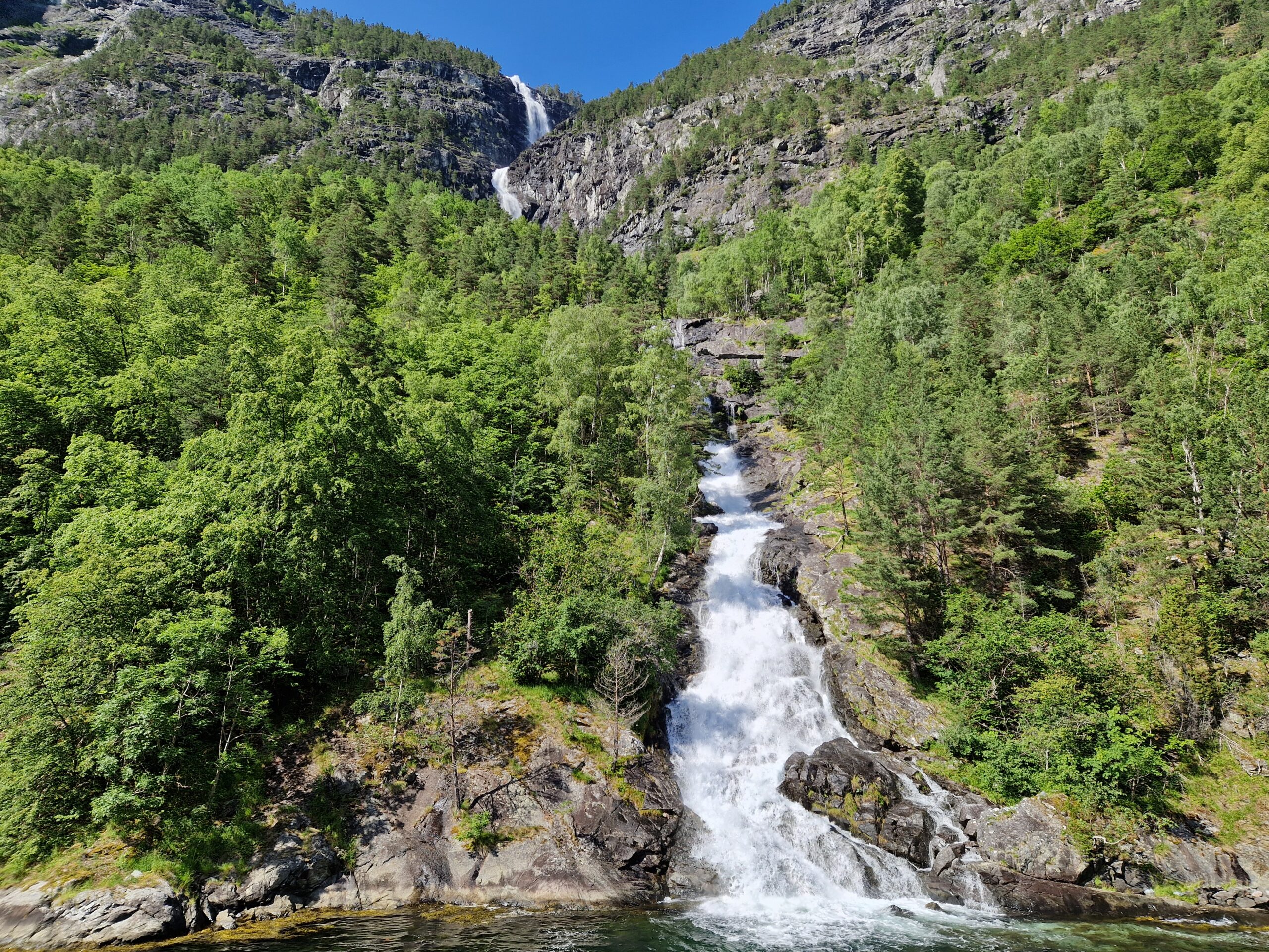Am nächsten Morgen begann unsere kleine Logistikkette: Weil wir kurzfristig gebucht hatten, waren nicht mehr alle Zugverbindungen verfügbar – also ging es zunächst per Bus und Bahn nach Gudvangen. Im Nachhinein war das ein Glücksfall, denn so bekamen wir unterschiedliche Perspektiven auf die Berg- und Fjordlandschaft.