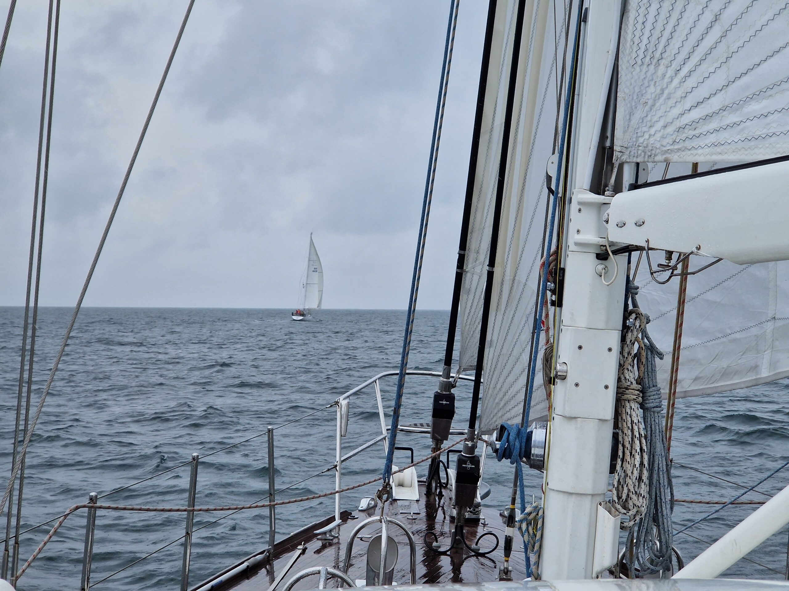 The afternoon started quietly, with light winds and a calm, even sea. In the evening Klaus took the first watch – and it nearly ended dramatically. In the dark a brightly lit object appeared ahead. Overtired and not yet properly in night mode, Klaus assumed it was an approaching vessel. Only at the last moment did it dawn on him that it was a buoy – and he swerved hard to starboard. The journey might almost have ended on the very first night. It was a shock that later often reminded us how narrow the line is between fatigue and alertness. After that there was, of course, no thought of sleep, and it was a useful lesson in judging one’s own reaction and decision-making when overtired. The next morning we arrived safely in Klintholm. The rain was actually welcome, giving us a chance to sleep off the scare.