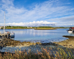 The next morning brought a small logistical adventure: at the local general store, we actually managed to get engine oil for the dinghy, which had been in urgent need since Halten. A lucky find, as our plan was to take the ferry to the neighbouring island of Sanna. One small detail we had missed: the ferry doesn’t run on Tuesdays. So we went by dinghy – and thanks to the fresh oil, that was no problem.