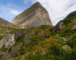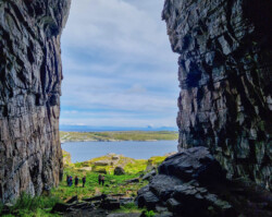 Sanna immediately impressed us. The hike around the island is varied, rugged, and beautiful. Of course, we also tested the famous acoustics of the cave where part of the Træna Festival takes place – though more with shouting and yelling than singing. The concerts must sound truly extraordinary there, and the location itself is already unique.