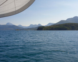 Next, we set course for the Svartisen Glacier. The plan: moor at the guest pier and experience the glacier up close. The reality: the pier was full – occupied by workboats and fast RIBs running shuttle services. There was no room for Anori. So we settled for a few shots from a distance and bid farewell to the fjord. We spent the night in Bolga, where it was noticeably quieter.